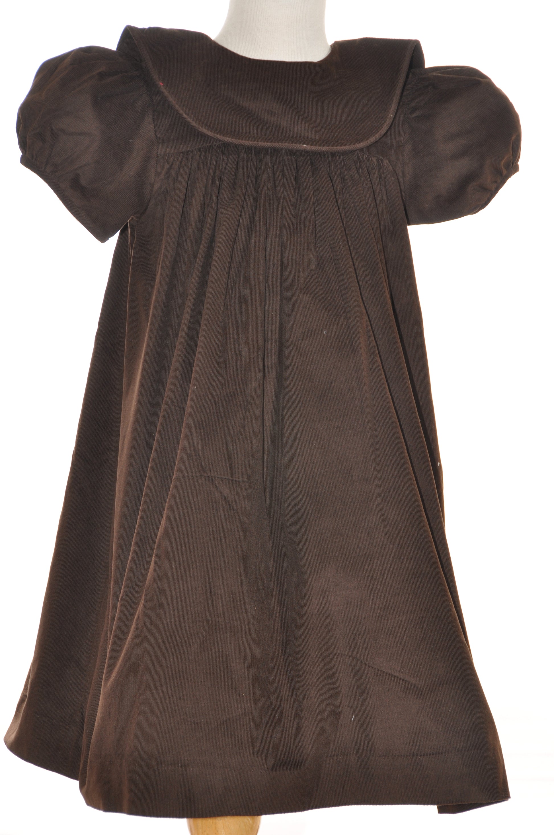 Brown Corduroy Girl Dress With Round Collar Monogramable