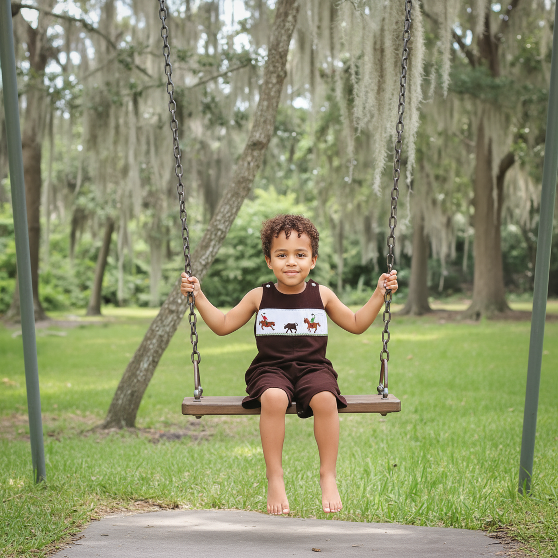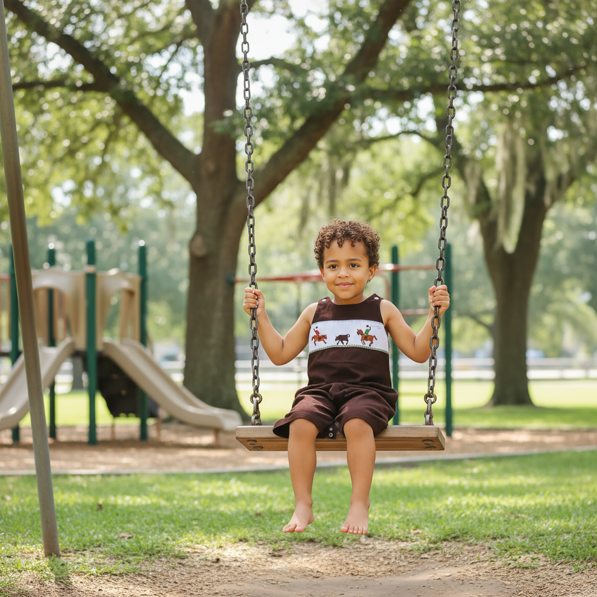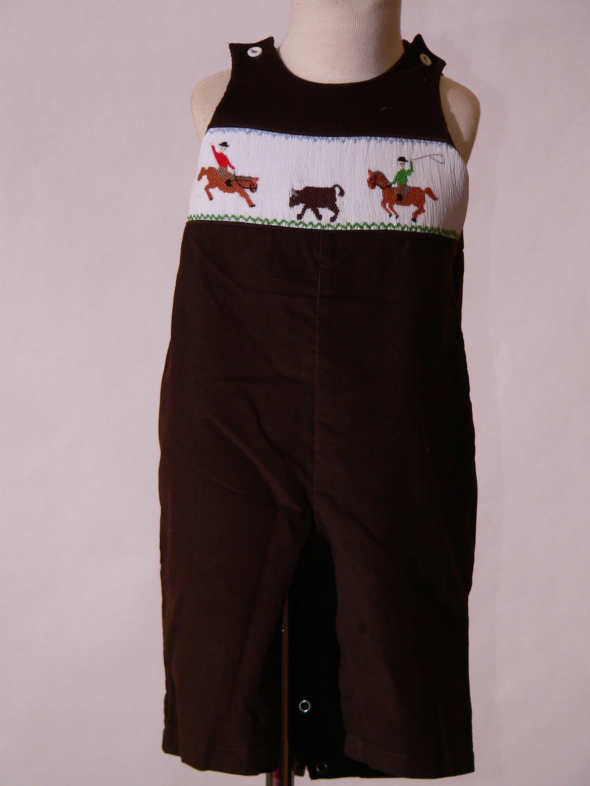 Brown Corduroy Rodeo Rider Smocked Boy Long Overall