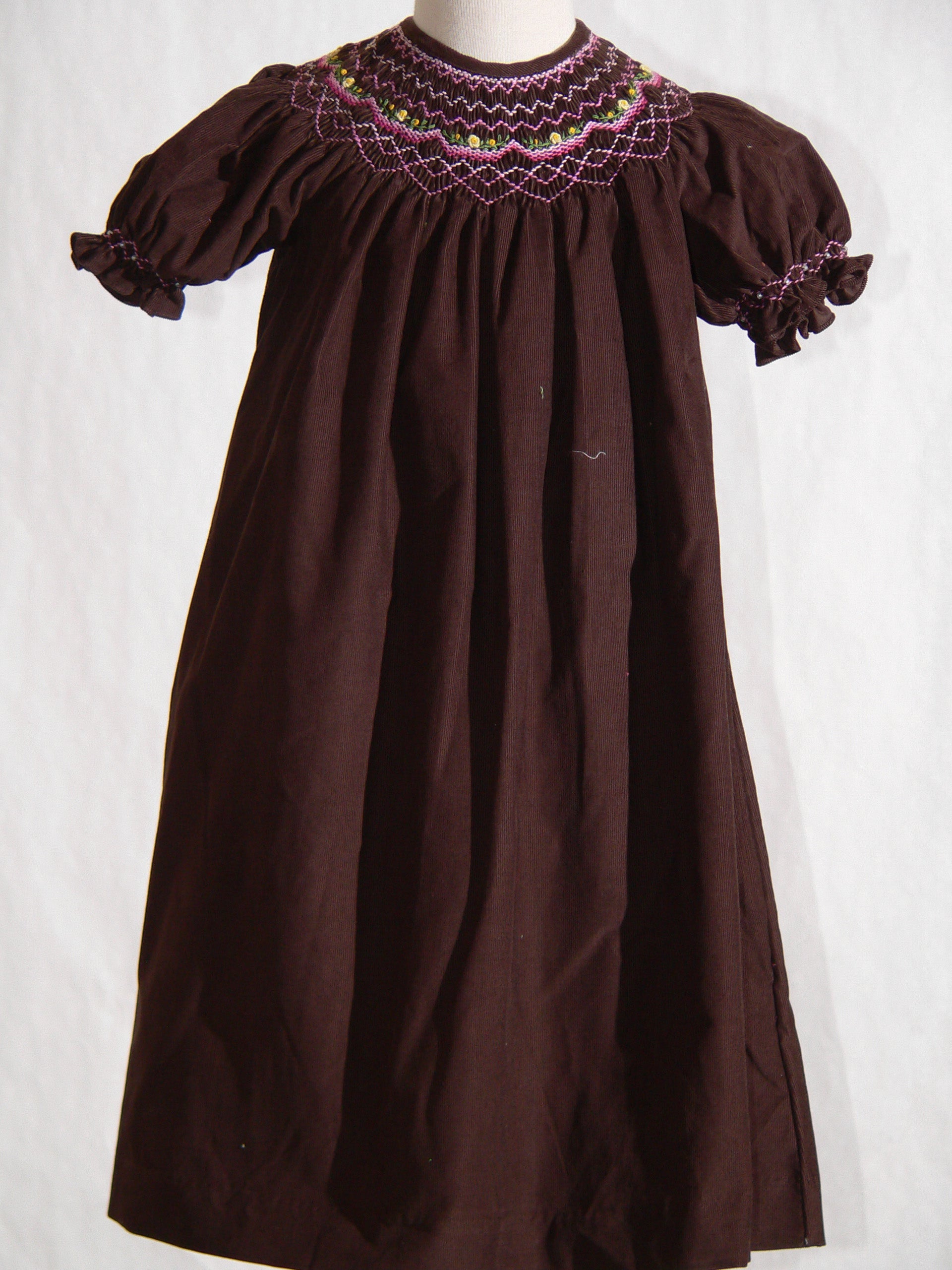 Chocolate Brown Corduroy Geo Smocked Short SleeveBishop Dress