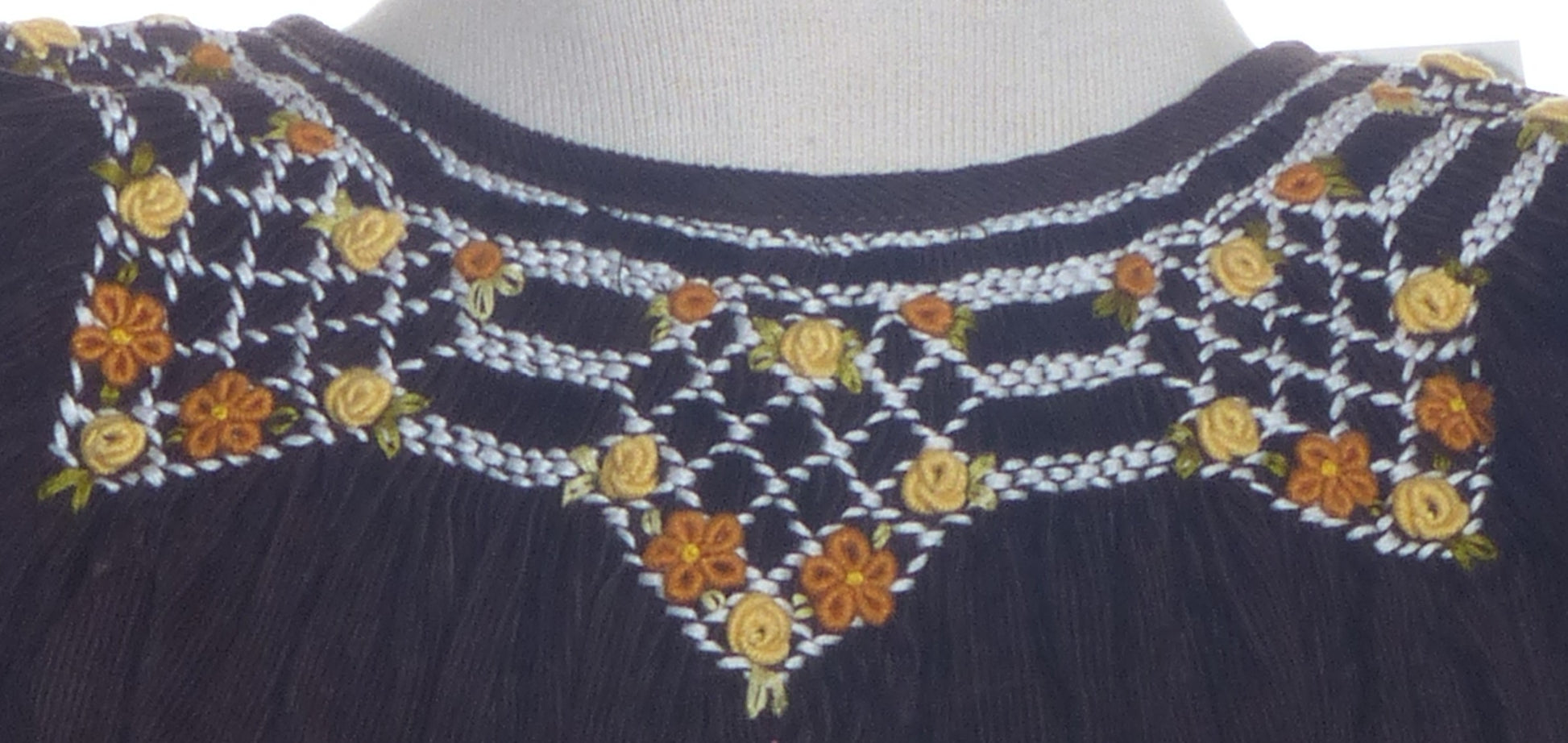 Our hand smocked and hand embroidered garments are very delicate, please wash in cold water inside out before the first wear.  Remove wet garments promptly and tumble dry low or lay flat to dry.